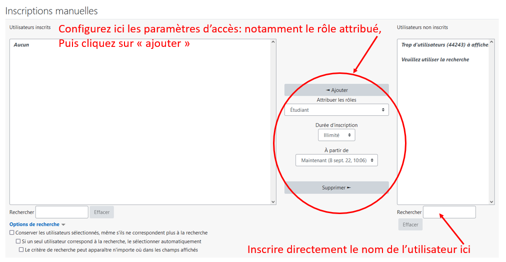 Cette procédure consiste à inscrire directement un utilisateur : étudiant ou enseignant*.